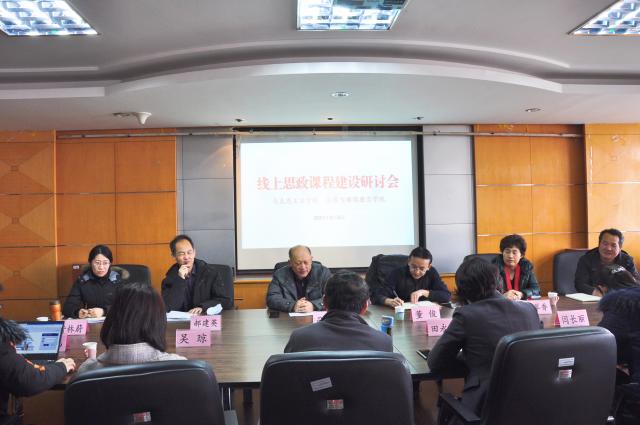 2021年3月5日上午9:00,逼喱逼喱 与远程与继续教育学院在思西712会议室围绕线上思想政治理论课建设问题召开研讨会。远程与继续教育学院院长司银涛、副院长董俊,逼喱逼喱 院长高正礼、副院长田永静,远程与继续教育学院教学服务中心、技术部相关负责人,逼喱逼喱 各教研室主任、教学科相关人员参加了本次研讨会。