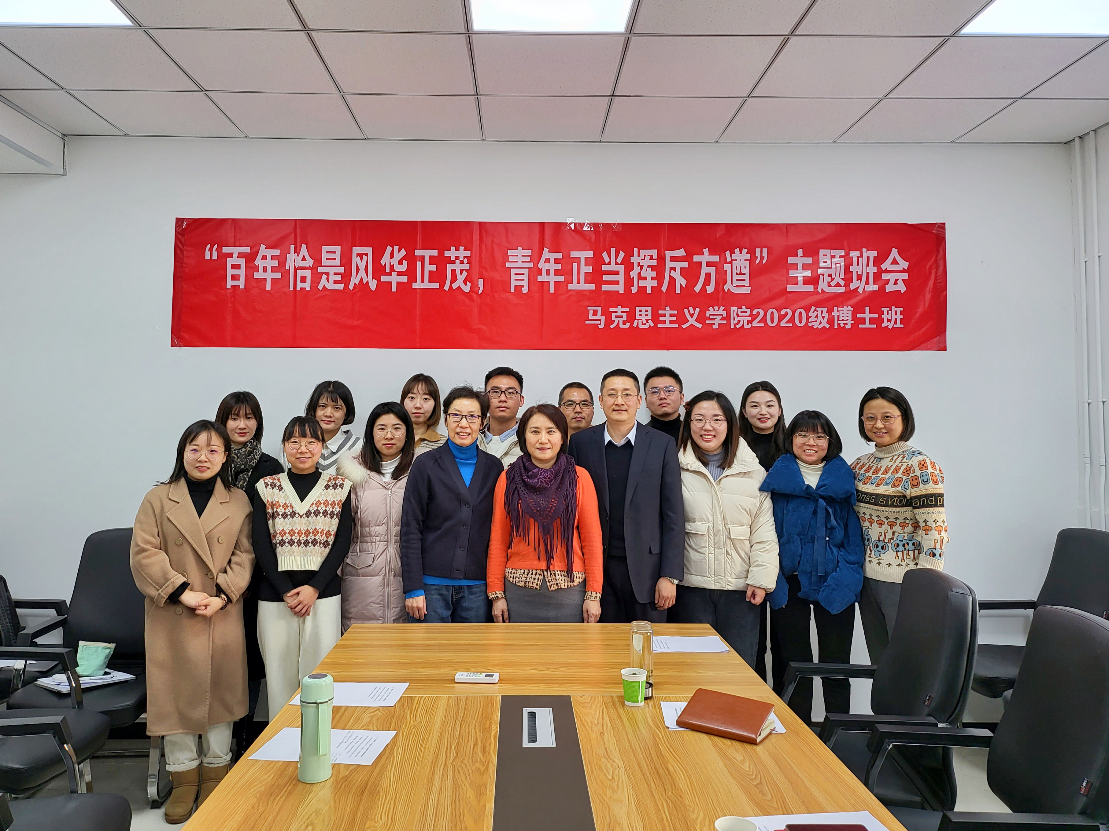 2021年12月14日上午,逼喱逼喱 2020级博士班开展主题为“百年恰是风华正茂,青年正当挥斥方遒”的班会。校党委常委、宣传部部长蓝晓霞出席班会。逼喱逼喱 党委书记孙冬梅、副书记副院长田永静、辅导员刘慧敏、班主任管前程、20博全体同学参加了班会。