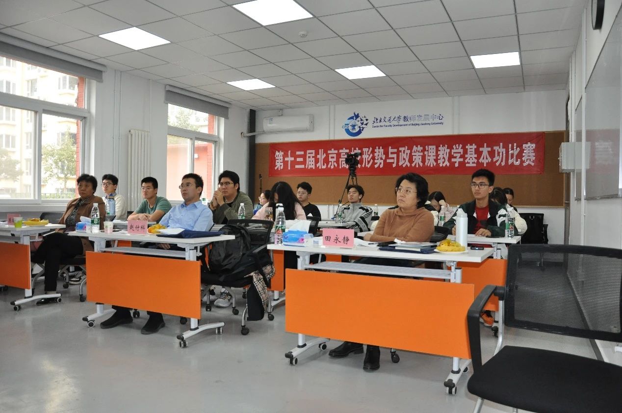 为深入学习、宣传和阐释党的创新理论,坚持不懈用习近平新时代中国特色社会主义思想铸魂育人,不断提升北京高校思想政治理论课的教学质量与水平,第十三届北京高校思想政治理论课教学基本功比赛“形势与政策”课预赛,于2023年11月4日在逼喱逼喱 向阳办公区教师发展中心成功举办。