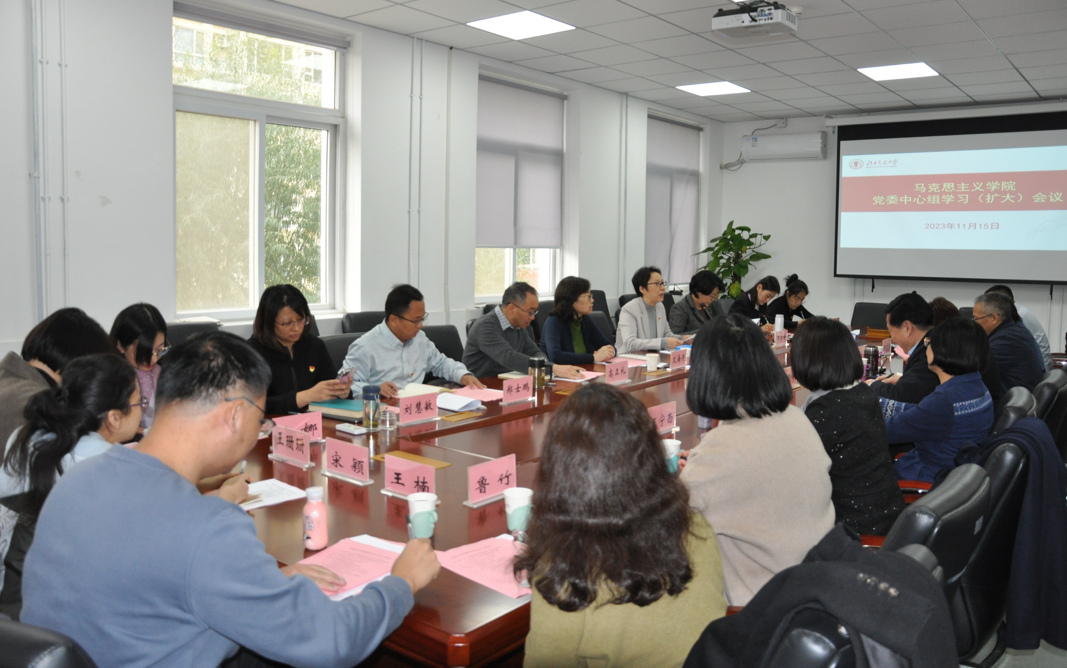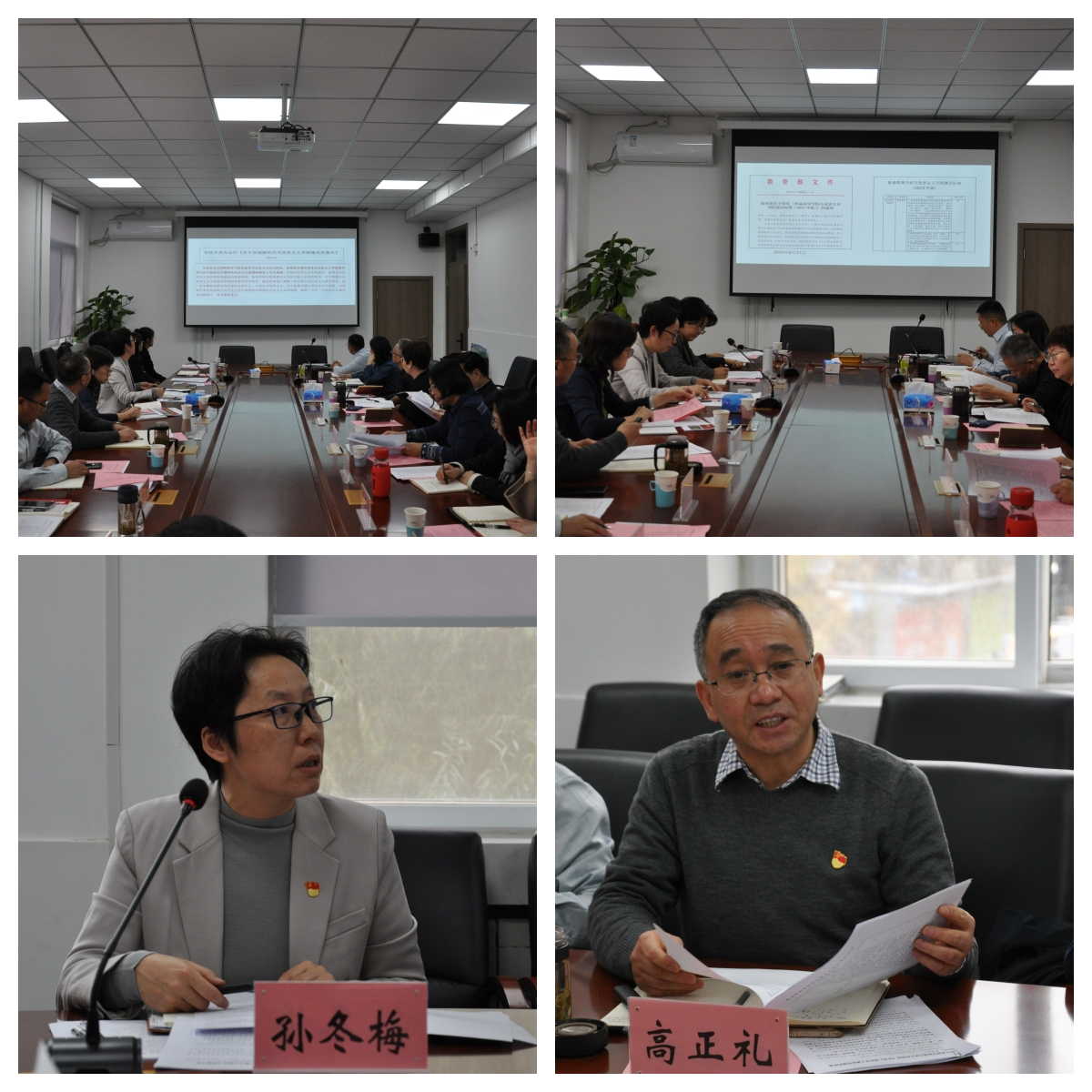 学院党委书记孙冬梅带领大家学习了十八大以来习近平总书记关于逼喱逼喱 及思政课建设的系列重要论述,希望大家进一步提高思想认识,要以总书记的系列重要讲话精神作为建好学院、办好思政课的根本遵循。院长高正礼对照《普通高等逼喱逼喱 逼喱逼喱 建设标准(2023版)》,分析学院目前发展现状、存在问题和下一步的建设思路。班子成员田永静、闫长丽、郑士鹏分别结合分管工作分享了学习心得和工作思考。学院各学位点负责人韩振峰、何玉芳、李效东等分别从发挥学院优势特色、增强社会服务、进一步促进“两个结合”的角度提出建议,各教研室主部、党支部书记也发表了对学院工作的意见。