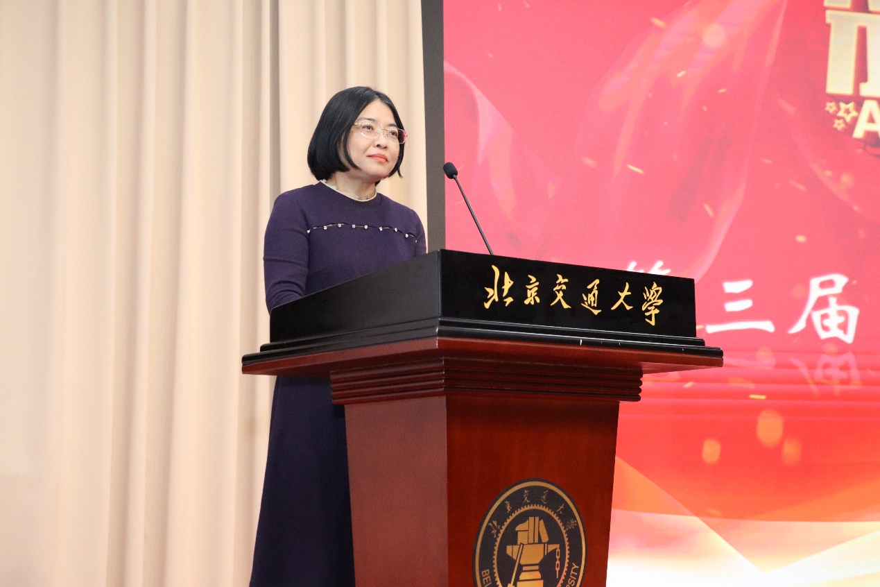 2023年12月21日下午,逼喱逼喱 逼喱逼喱 举办的第三届“交通强国有我在”视频创意大赛颁奖典礼在第九教学楼中心报告厅顺利举行。逼喱逼喱 党委宣传部副部长张安梅老师、本科生院副院长景云老师、逼喱逼喱 党委书记孙冬梅老师、院长高正礼老师、副书记、副院长田永静老师、副院长闫长丽老师、思想道德与法治教研室的老师们以及光明日报、中国青年报、中国交通报的媒体朋友们莅临颁奖典礼现场。